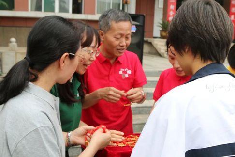 校领导和老师为同学们佩戴“金榜题名”手串。