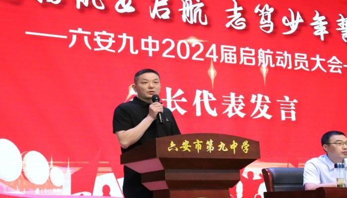 家校携手齐合力,同舟共济扬帆起。2024届九(32)班马馨悦同学家长代表全体家长发言,他高度赞誉了六安九中高品质的教育和高质量的发展,表达了对学校的感激之情,倾诉了父母对孩子的殷切期盼。
