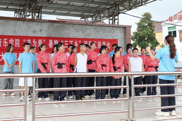 在安庆市怀宁县腊树初中的音乐教室,音乐学院“音为爱”暑期社会实践团的成员们正带着孩子们用一“筝”一“扬”展示中国古典音乐的魅力;在合唱教室,《我和我的祖国》深情的旋律传递出浓浓的爱国之情;在舞蹈教室,秧歌、腰鼓舞等民族民间舞蹈轮番上阵,尽显民间文化气息和生活情趣。