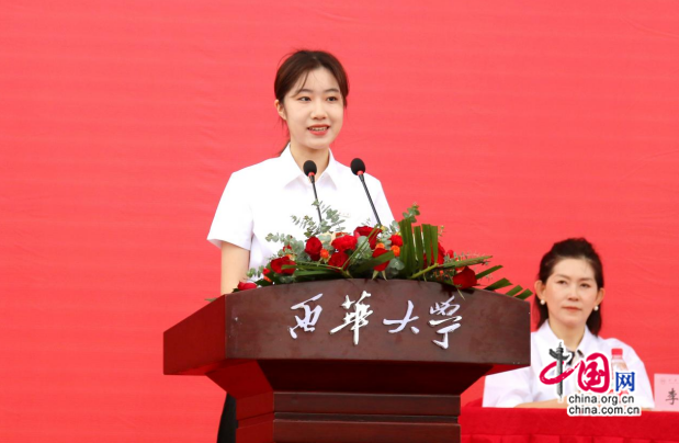 “希望大家在‘西华’得到全方位地锻炼和成长,通过自身的辛勤付出,成为德智体美劳全面发展的新‘西华人’,成为勇担时代使命的社会主义建设者和接班人。”