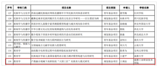 突破!成都工职院科研项目获教育部人文社会科学研究项目立项公示