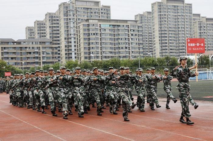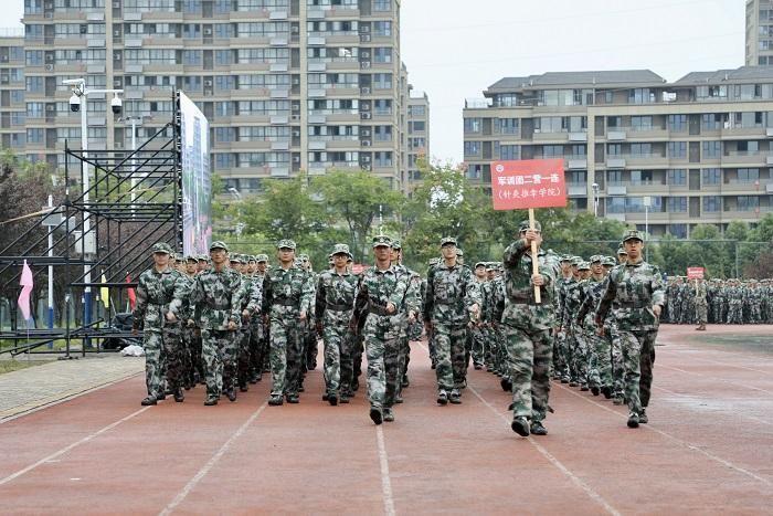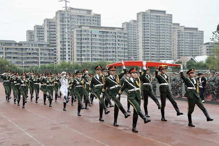 2023级参训同学分为9个营,组成40个方阵,意气风发、斗志昂扬,踏着整齐的步伐、喊着嘹亮的口号经过主席台。随后,国旗护卫队步履铿锵护送国旗入场,全场奏唱国歌,五星红旗冉冉升起,格外鲜艳夺目。