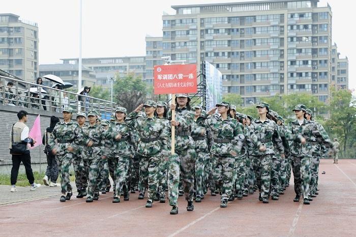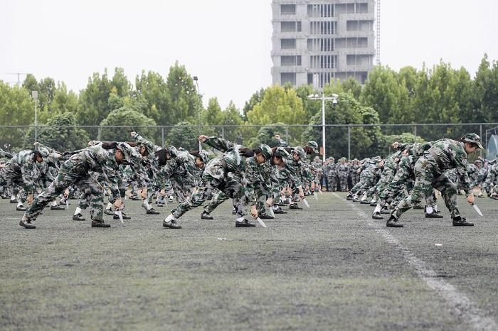 同学们进行了军体拳、刺杀操、匕首操、韵律操等军训科目展示及文艺表演。他们一张一弛游刃有余,一招一式干净利落,充分展现了入学以来的训练成果和新时代大学生的青春朝气,不时赢得现场师生的阵阵掌声。