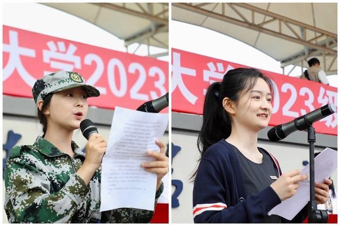 大会现场,许钒宣读《关于通报表扬安徽中医药大学2023级学生军训优秀学员的决定》,主席台领导为优秀学员代表颁发荣誉证书。药学院2023级药学3班茅敏琪同学作为新生代表、医药信息工程学院2021级中医药信息学硕士研究生聂壹琦同学作为老生代表依次发言。