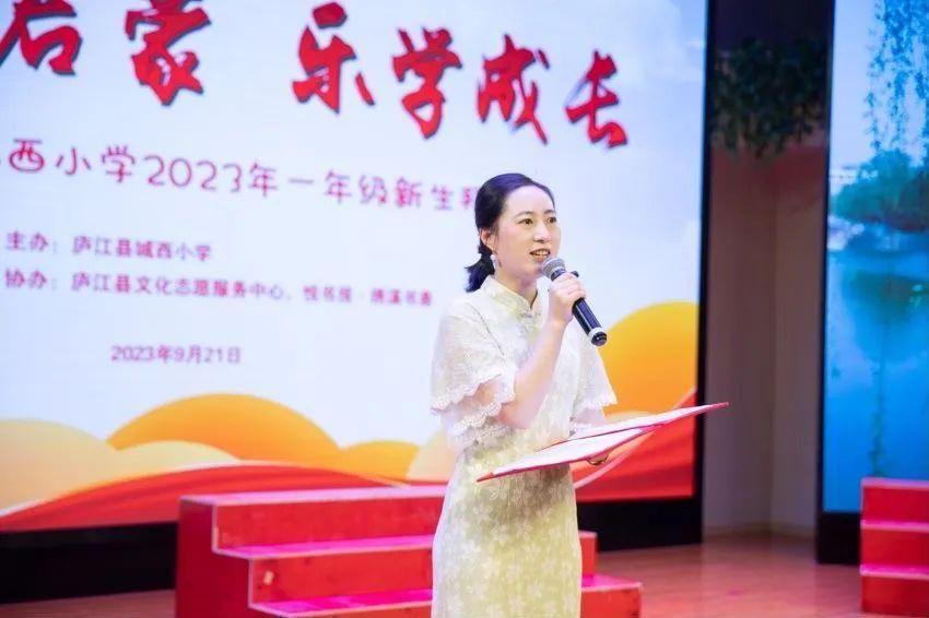 虔诚拜师礼,浓浓师生情;杏灯芳菲沁,桃李薪火传。为让一年级新生感受温馨友爱的校园环境,领略中华优秀传统文化的魅力,弘扬尊师明礼的传统美德,9月21日上午,庐江县城西小学举行了2023年度新生拜师礼仪式。参加拜师礼的嘉宾有庐江县妇联副主席徐海燕,庐江县教体局党委委员、副局长朱德波,庐江县教体局党委委员、副局长莫俊智,庐城镇中心学校党委书记、校长何普明,庐江县教体局安全科科长马春霖、副科长陶苑婷,庐城镇中心学校党委委员、副校长卢建民等相关领导。