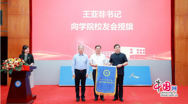 会上,王亚非为该学院校友会授旗;该校副校长孔令讲宣读了《同意成立经济与管理学院校友会的函》;党委副书记靳敏为学院校友会会长、执行会长和副会长颁发了聘书。