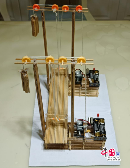 此外,陈晴老师凭借其独特的创新思维和卓越的实践能力,荣获教师组一等奖。她的作品通过运用独特的桥体和创新结构,构造出了大跨度桥梁。