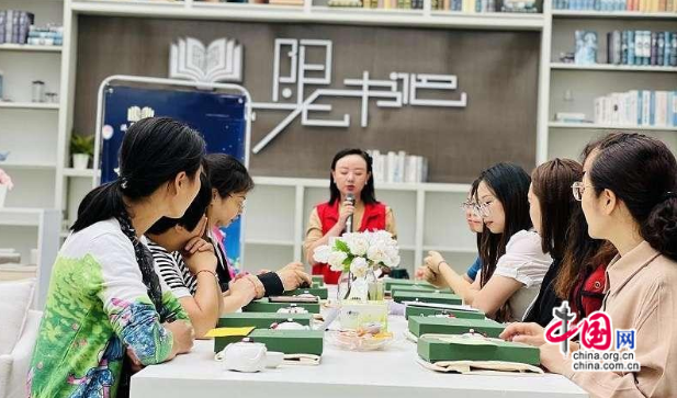 在沫若图书馆阳光书吧,凤凰学校的九名语文老师分别介绍了传统佳节中秋文化,通过了解中秋节起源习俗等文化知识,让大家从中深刻体会中秋节的意蕴,感受民族传统文化的悠久历史;老师们还一同吟诵中秋诗词,让现场观众感受着诗词中饱含古往今来让人们久久不能忘怀的思乡和爱国之情,体会诗词声韵中节日的深远意蕴,领略中华优秀传统文化经久不衰的魅力所在;此外,老师们还进行了好书推荐,分享了平时爱看的书籍,结合各自的工作生活经历和切身体会,畅谈自己的感悟,并交流分享阅读心得,在分享中汲取精神力量。