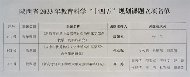 邰晓东宣读了陕西省教育科学研究院“十四五”规划课题立项文件,并对成功立项的三个课题组表示祝贺!他强调,陕西省教育科学规划课题为省级项目,要注重课题研究的五个重要步骤,研究过程要与教学实际问题紧密结合。他表示,教科信息处将加强课题过程管理,推进各课题项目实施,希望各课题组负责人按时完成研究任务,以高水平研究成果为学校教育发展提供智力支持。