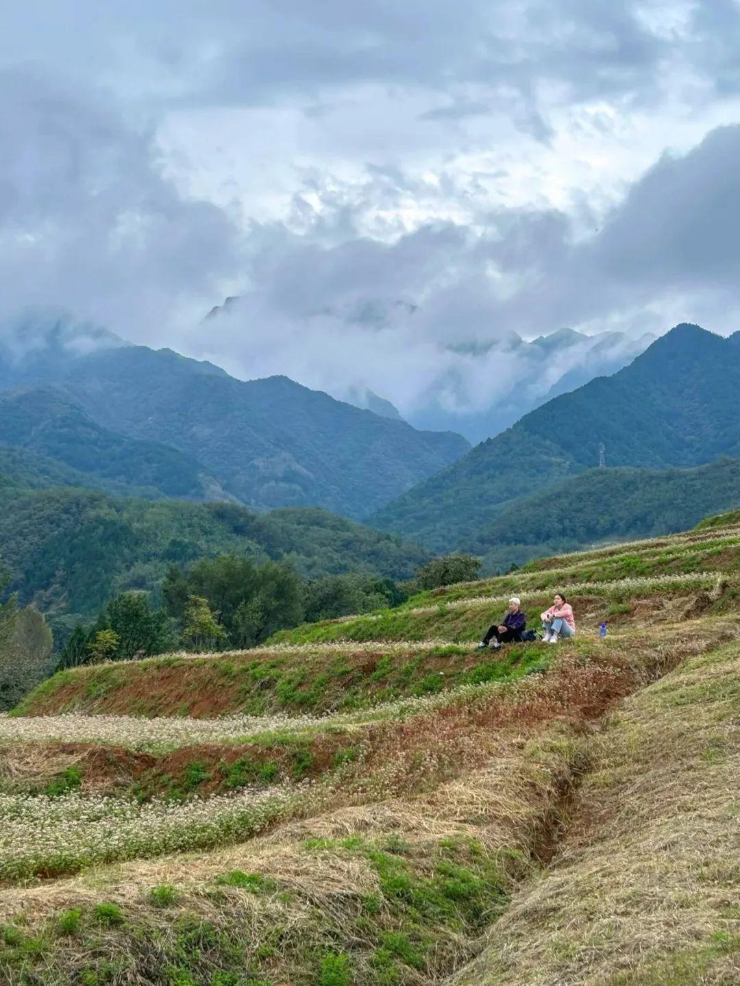 蓝田荞麦岭知道已久,却不知道荞麦花也是如此的美丽。适逢国庆期间荞麦花开,背靠白鹿原的蓝田荞麦岭游人如织,两位附近的村民坐在田埂边,看着自己村庄的农业旅游逐渐兴起。
