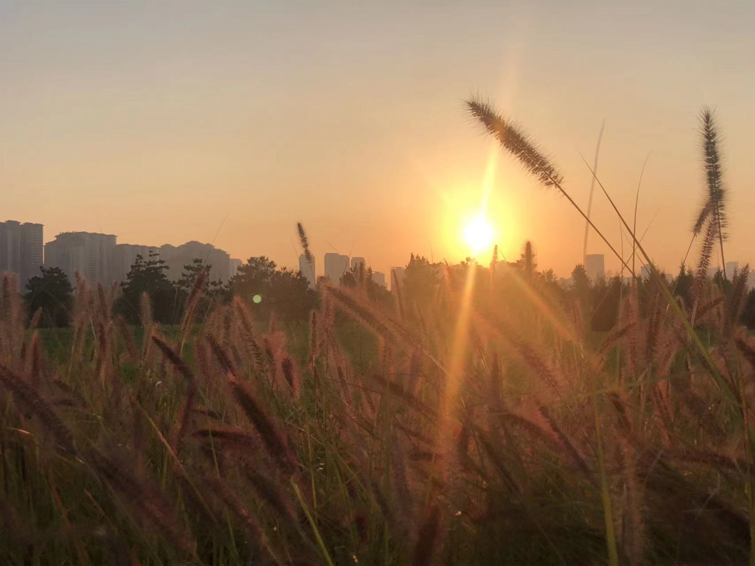 很幸运看到汉长安遗址公园的初冬落日,瘦削的枝头挂着一轮红日,水洗般清澈明亮,红色侵染了西边的云彩。冬日的黄昏,天气出奇得冷,却因了这日光显得格外温暖,美丽。