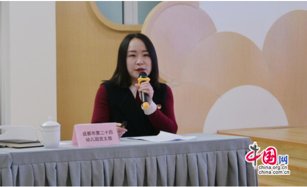 会上,成都市第二十四幼儿园党支部书记洪悦以《党建引领 启航实践》为题的分享开启了此次分享活动。洪悦表示,“二十四幼一直以来‘坚持一条主线,推进两个融合,提升三支队伍’的‘123’党建融合路径,从而有效保障‘党组织领导的校长负责制’的贯彻落实。”