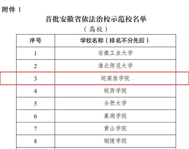 近日,安徽省教育厅公布了省高校依法治校示范校评选结果,皖南医学院被评为“首批安徽省依法治校示范校”。