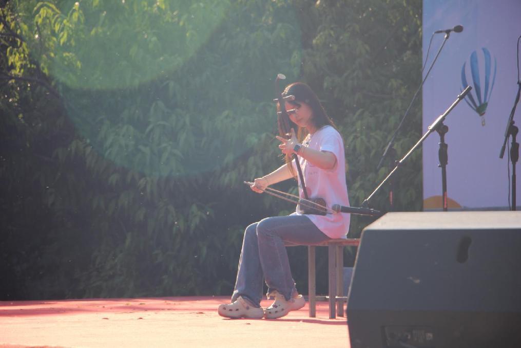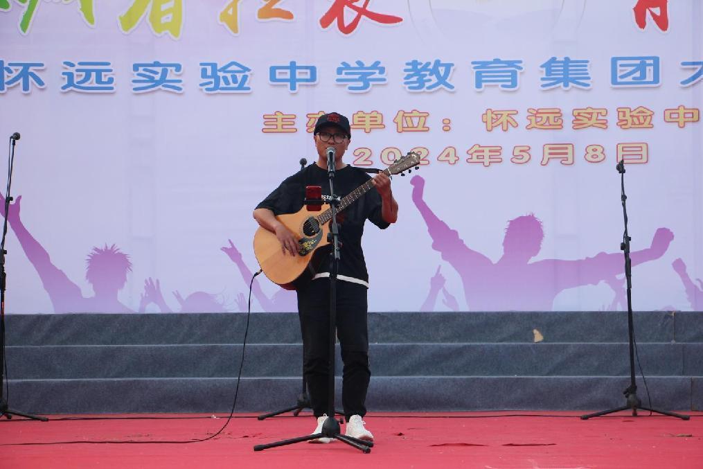 比赛间隙,评委老师和学生也带来了精彩的表演,获得全场的热烈掌声。张新雨老师演唱的《奢香夫人》展示了深厚的专业功底;孙方正老师表演二胡独奏,曲声悠扬;谢彤的吉他弹唱《小手拉大手》欢快愉悦;刘凌睿为同学们带来精彩演讲《生逢盛世,不负韶华》。歌声乐声飞扬广场上空,现场气氛愈发高涨,喝彩声、鼓掌声、欢呼声,声声起伏。