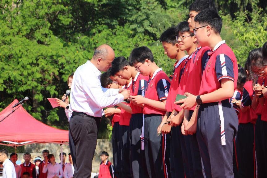 孙利怀致开幕词。他诗意的发言,充满了对同学们青春的赞美,鼓励学子们趁大好年华奋发进取,让生命焕发绮丽的光彩,开启了庆典的第一篇章——集中入团。