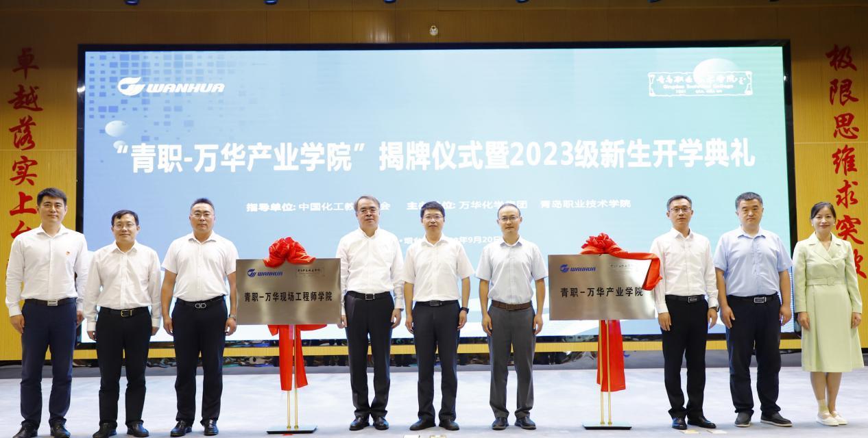 图2校企共同为“青职—万华产业学院”和“现场工程师学院”揭牌