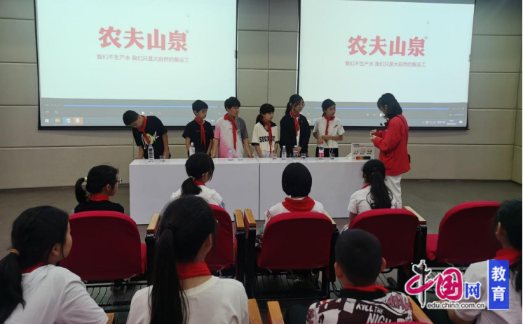 在农夫山泉导游姐姐的介绍下,同学们行走在游览区,聆听了 “大自然搬运工”农夫山泉是如何“搬运”水的;了解了纯净水、包装水、矿泉水的区别。站在车间内的参观走廊上,农夫山泉天然水的生产流程尽收眼底。“太神奇了,一条生产线一个小时能生产七万二千瓶矿泉水。”“老师,这么大的工厂,没有噪音、没有尘埃,自动化生产,流水作业,我长大了也要到这样的企业工作。”“快看,快看……机器人正在包装水。”老师告诉孩子们,科技运用,降低了成本,同时对工人技能提出更高要求,大家要好好学习,有了技术和能力,才能更好地适应社会需求。