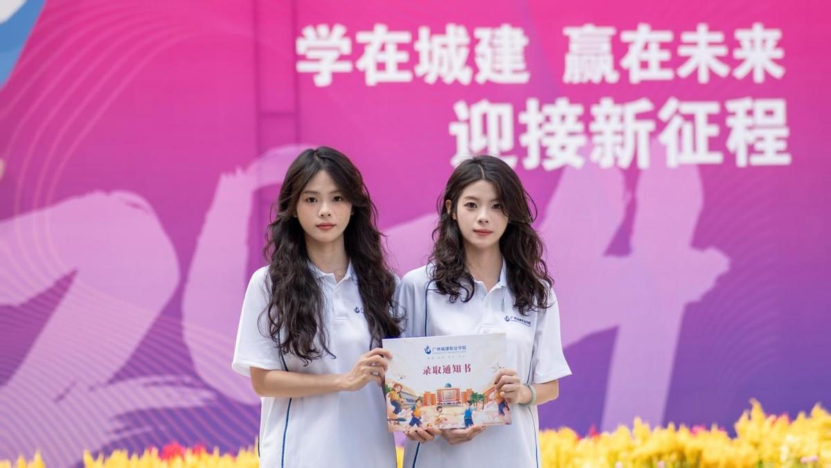 广州城建职业学院双校区迎来万余名新生双胞胎“姐妹花”来报到
