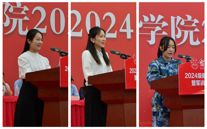 新生代表、化学化工学院2024级化学工程与工艺专业学生李树瑄,老生代表、音乐学院2021级泗州戏表演班学生孔雨晴,教师代表、外国语学院辅导员杨哲等先后在典礼上发言。