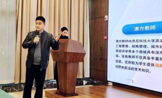 活动伊始,2024级MEM学生杨公仆作为学生代表,向企业介绍了SHU—UTS硕士项目,企业20余位中高层管理人员参加。他从自身就读体验出发,详细阐述了 UTS 硕士项目的专业培养模式、个性化与多元化的学生培育理念、来自国内外的顶尖师资力量和国际合作交流平台,并列举数位成就斐然的优秀校友实例。在介绍过程中,泸州老窖员工不断提问,就项目的特色专业架构、先进办学思想、丰富优质的育人平台,以及优秀校友在校期间所获得的关键支持进行深入咨询。