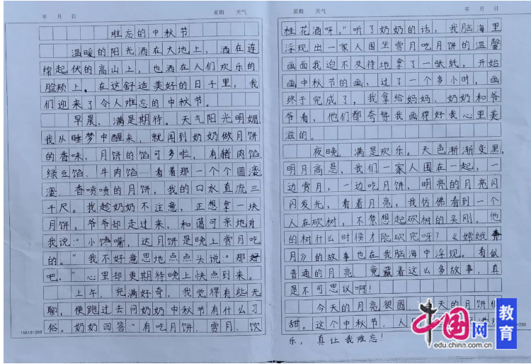 在深入了解感兴趣的节日过程中,学生们收获颇丰。他们用纯真的笔触,将观察生活的点滴和内心感悟诉诸文字,一篇篇饱含童趣的文章,成为传承节日文化的生动见证。
