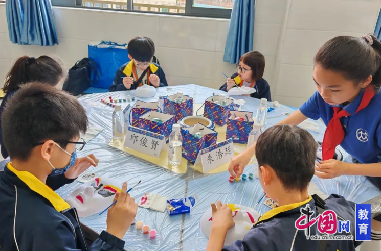 站东小学健美操队的孩子们用自己精湛的舞姿,向香港保良局梁周顺琴小学的师生们表达了欢迎之情。此外,两校同学在专业老师的指导下,体验了脸谱的制作,从绘制到上色,同学们体验了一场沉浸式的画脸谱体验。