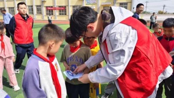三桥镇文明办志愿者走进校园向学生普及国家安全相关法律知识。
