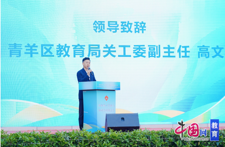启动仪式在树德实验中学(东区)啦啦操社团活力四射的表演中拉开序幕,蓬勃朝气与银龄风采交相辉映。青羊区教育局党组成员、机关党委书记、关工委副主任高文在致辞中强调,青少年是民族的希望,教育工作者需以“捧着一颗心来”的赤诚,为党和国家培育时代新人。他特别指出,由老党员、老校长、老德育工作者、老班主任、老教师组成的“五老”群体,是青少年成长路上的“引路人”,其丰富经验与崇高品德将为青羊教育注入温暖而坚韧的精神力量。