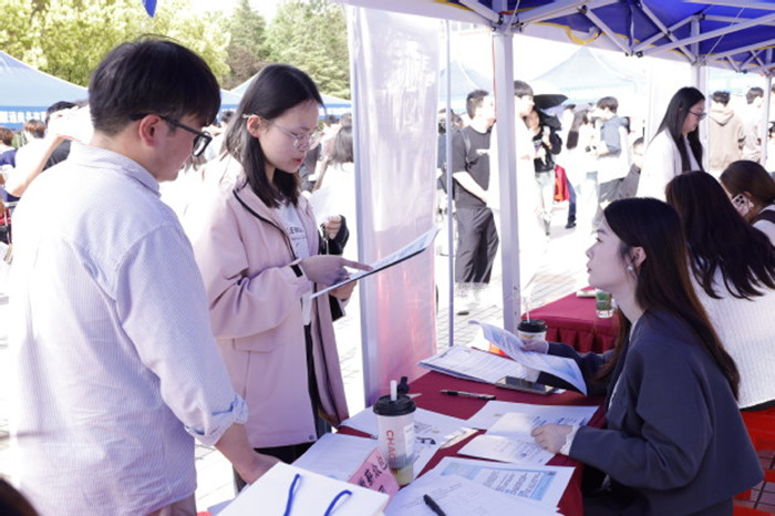 现场气氛热烈,毕业生穿梭在招聘展位前,积极与用人单位沟通,询问与自己专业相关的岗位需求、发展前景以及福利待遇等。现场还特别设置“简历问诊台”服务窗口,由就业指导专家对毕业生简历制作提供有效建议,为毕业生提供精准化指导与个性化服务,吸引大批学生驻足。据统计,毕业生现场共投递简历2717份。