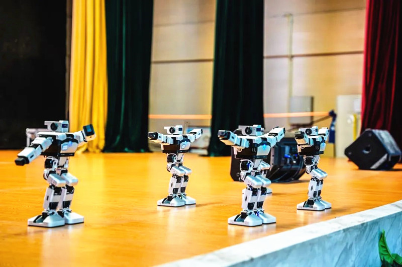 机器人社团带来的“机器人舞蹈”表演精彩纷呈:动感音乐中,机器人灵活起舞,动作整齐如训练有素的舞者,赢得台下阵阵掌声,未来将继续开展丰富活动,助力学生探索AI与机器人技术的无限可能!