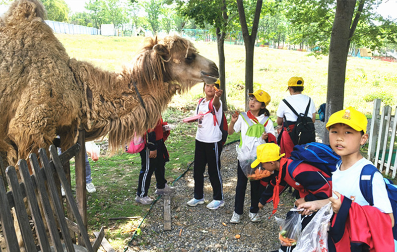 随后,研学队伍来到动物园和无动力设施园区。在饲养员的引导下,同学们认识了各种动物的习性,亲手投喂小羊驼、骆驼,眼神中满是好奇与欣喜。无动力游乐区里,他们挑战攀爬网、协作过独木桥,在滑梯与秋千间尽情嬉戏,团队合作与勇气在游戏中悄然生长。