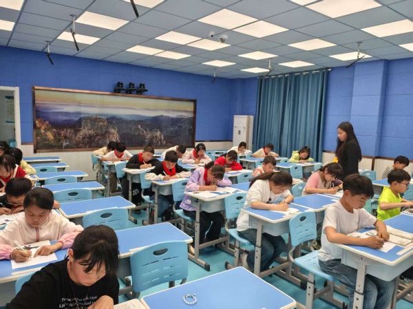 硬笔书法比赛吸引了四五六年级学生的积极参与,赛场上选手们全神贯注端坐在桌前,一笔一划认真书写诗词,刚劲有力、清秀隽永的字迹体现出硬笔书法的独特魅力,中华千年文化在书写中焕发出时代光彩。