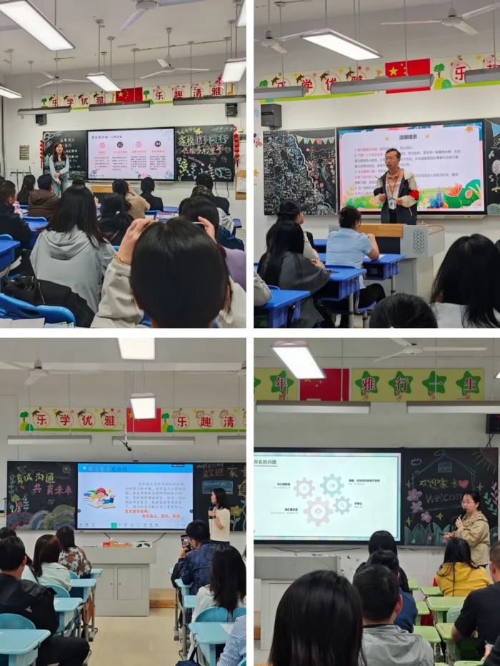 在班级交流环节,班主任们基于半学期以来的班级实际情况,从学生心理状态、安全教育、学习习惯、卫生管理等维度展开细致总结。既对成绩优异、表现突出的学生进行公开表彰,树立学习榜样,也直面班级与学生现存问题。此外,班主任们结合具体案例,向家长提出涵盖行为习惯塑造、心理健康呵护、学习方法指导等多方面的切实可行的配合建议,为家校协同育人指明方向。