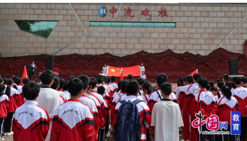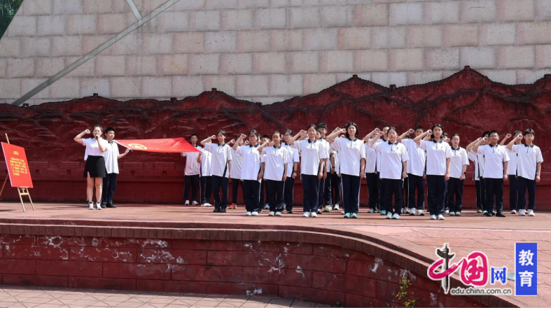 师生齐聚“中流砥柱”广场。该校副校长贾林作了主旨讲话,在巍峨的抗战雕塑群像前,党员教师面向党旗重温入党誓词,铿锵誓言响彻云霄。入团仪式上,19名新团员代表在团旗下庄严宣誓,光荣加入中国共产主义青年团。
