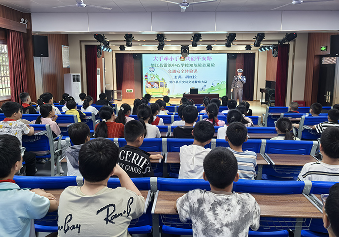 4月30日下午,望江县雷池中心学校举办了一场主题为“大手牵小手 共创平安路——知危险会避险”的交通安全体验课。此次活动由望江县公安局交通警察大队胡红松警官主讲,旨在提升学生的交通安全意识,增强自我保护能力。