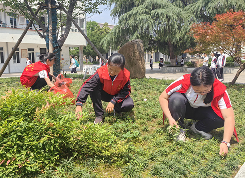 4月29日,学校30名初二年级志愿者在校团委的组织下开展“美化校园”志愿服务活动。同学们在校园樱花树下为花坛清理杂草,用劳动实践迎接“五一”劳动节,为春日校园增添一抹整洁与生机。