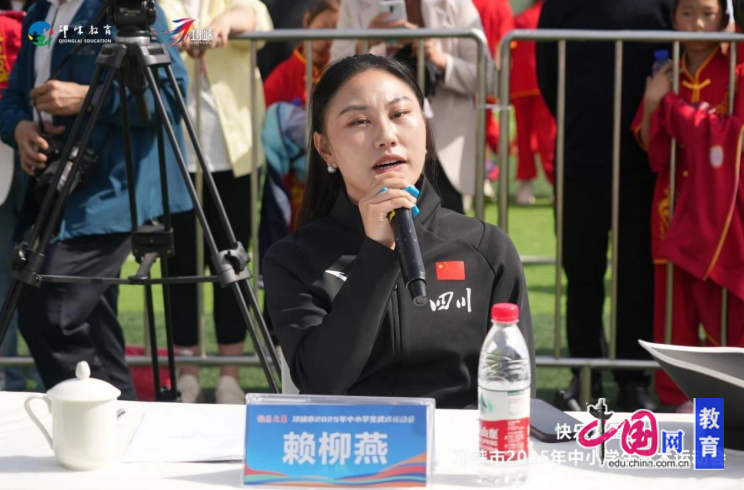 “看到同学们在赛场上展现出的武术精神风貌,我十分感动,老师们从‘不会到精通’的匠心打磨令人敬佩!集体项目中动作规范与团队默契的呈现,充分体现了武术‘形神兼备’的精髓。”“李付魁-杜昊滢冠军工作室”首席教练、成都体育学院武术学院世界冠军赖柳燕亲临指导并现场点评,特别点赞邛崃市武术传承的创新模式:“孩子们身着彩服在阳光下发光的模样,正是武术精神传承的最好模样!愿孩子们以武修身、以武励志,让中华武魂在新时代焕发光彩!”