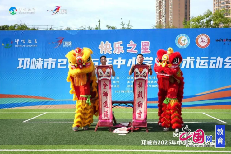 邛崃市教育局党组成员、副局长汤银君与文广体旅局体育中心主任侯江联袂为祥狮点睛,以“左点金,右点银,中点天下太平”的吉言拉开序幕。文昌小学校长张学霞热情致辞,诠释“以武育人”的教育理念。