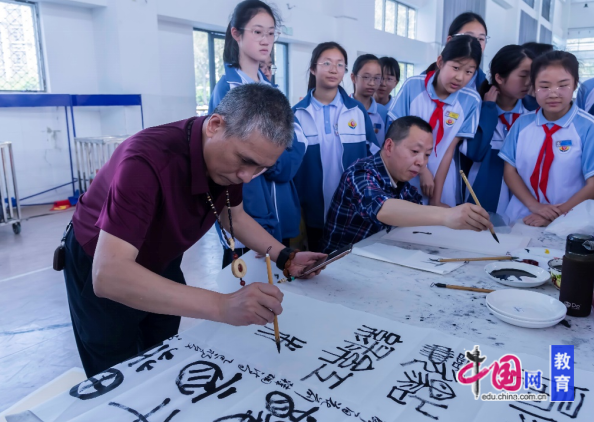 在师生互动环节,参会教师与书画家们挥毫泼墨,各展才华,精湛的技艺与独特的艺术风格令师生赞叹不已。学生们热情参与,与老师们近距离交流学习,在实践中提升了艺术素养。