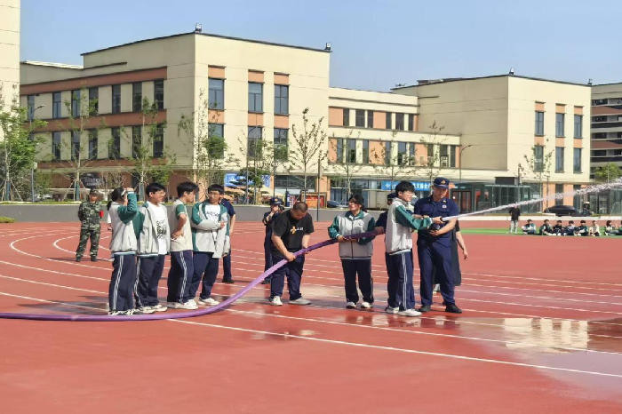 随后,滁州市南谯区消防救援局指战员易享和胡景文为师生讲解了防震防火知识,介绍了逃生要领和灭火器、消防水带的使用方法并进行了现场演示。学生积极参与其中,受益匪浅。