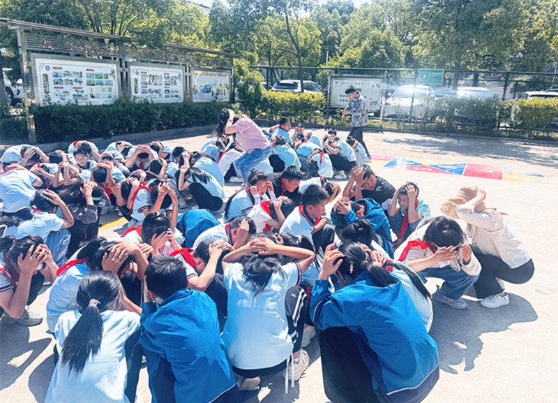 演练前各班通过召开“防震减灾”主题班会,学习《演练活动方案》,与老师、家人共同寻找教室、家庭安全避险位置,深入学习防震知识。演练过程紧张有序,地震警报一响,师生立刻就近寻找安全地点避险;待解除警报响起,各班教师迅速组织学生弯腰、抱头,有序疏散到室外安全场所。