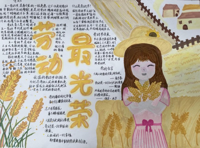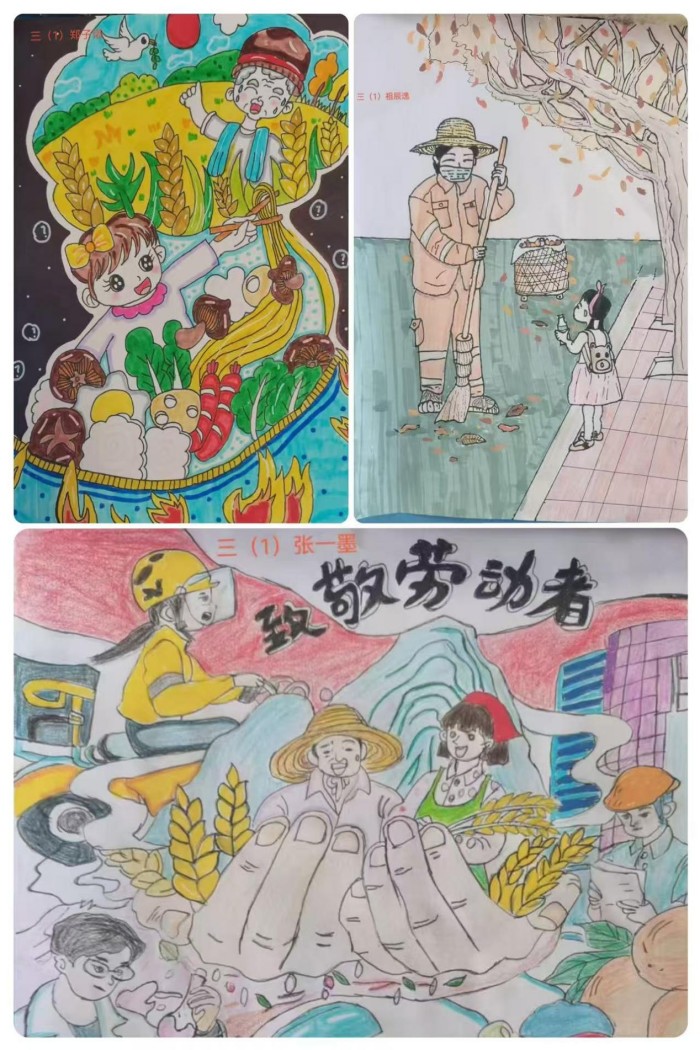 中高年级则注重劳动的创意与宣传。三年级开展 “画出心中最美劳动者”活动,学生们用A4纸为画布,以环卫工人、门卫师傅、警察等为原型,用画笔描绘出劳动者们辛勤工作的模样,表达对劳动者的敬意。四年级通过出一期“劳动节”主题黑板报,图文并茂地展现劳动的意义与价值,营造浓厚的校园劳动氛围。