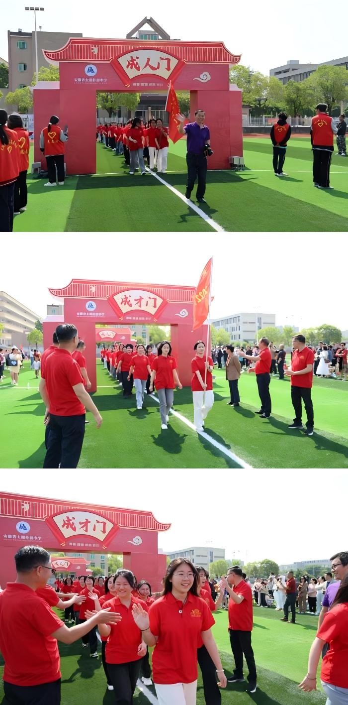 随后,各班班主任带领学生依次跨越“成人门”与“成才门”。背景音乐昂扬激越,校领导和同学们一一击掌相庆,祝贺大家开启人生新篇章。