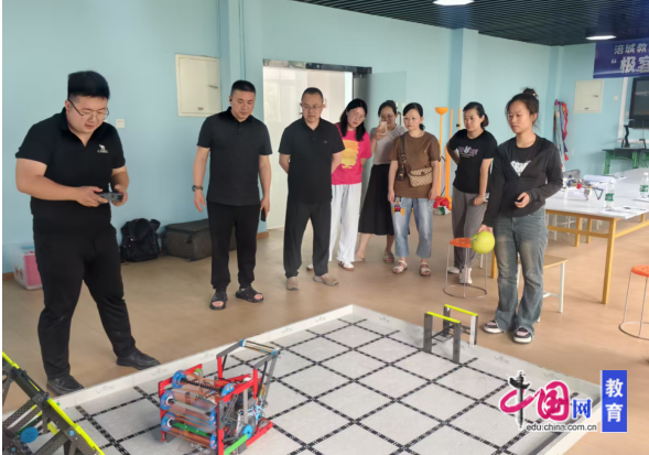 活动中,方图机器人赵老师为教职工讲解了Vex机器人。他通过实物演示,生动讲解了Vex机器人的结构原理、编程逻辑及实战应用,并分享了学生参加各类科技赛事的获奖情况。现场教职工积极参与互动,体验机器人操控与编程设计,气氛热烈。