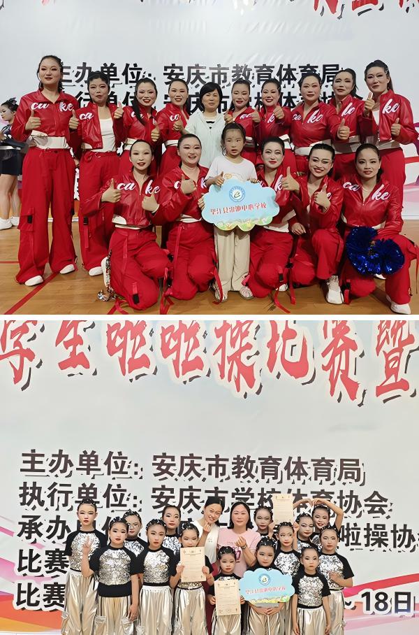 近日,安庆市2025年学生啦啦操比赛暨教职工啦啦操比赛圆满落幕。望江县雷池中心学校代表队在赛场上表现亮眼,收获多项荣誉。