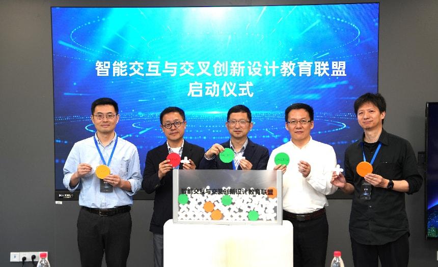 清华大学赵超、浙江大学厉向东、上海交通大学韩挺、南京艺术学院霍春晓、江南大学曹鸣共同启动“智能交互与交叉创新设计教育联盟”,联盟以整合各方资源、推动学科交叉融合与产学研用深度协同为宗旨,旨在打破常规教育模式局限,通过搭建各联盟高校、科研机构与头部企业的多方协同平台,共同开展跨校课程建设、跨校创新实践、跨校学科竞赛组织等协同育人活动。曹鸣为张福昌颁发联盟名誉总顾问聘书,胡振宇为张凌浩、赵超、候文军、韩挺、孙凌云、曹鸣颁发专家委员会委员聘书。