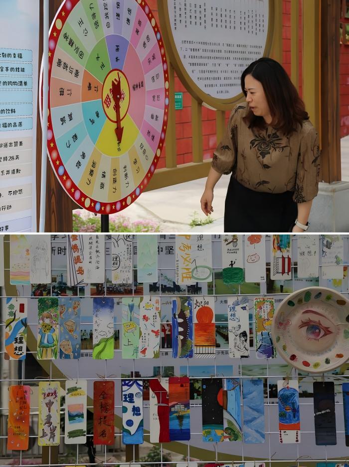 漫步在文化长廊“微笑签到墙”“幸运大转盘”和心灵书签展区,每个作品都藏着学生的创意与情感,每一个巧思尽显学校对学生心理健康的重视,老师们称赞其润物无声。