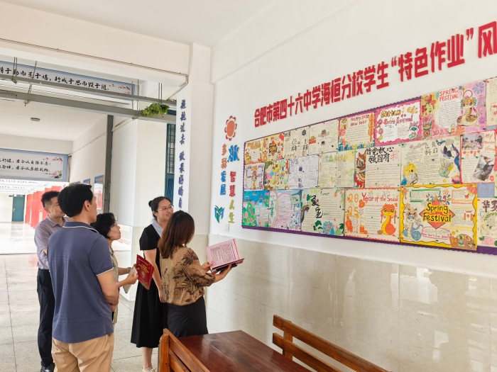教学楼内,白璐细致介绍学生的假期特色作业作品,作品将学科知识与生活实践深度融合,交流老师直言要将这样的作业设计引进推广进自己的校园。拾级而上时,“会当凌绝顶,一览众山小”等楼梯与长廊标语与转角处微风吹动的叶,书香沁润着校园的每个角落。
