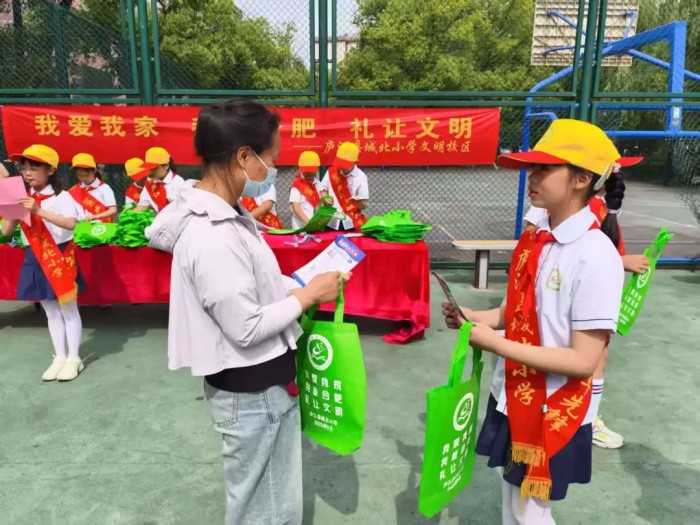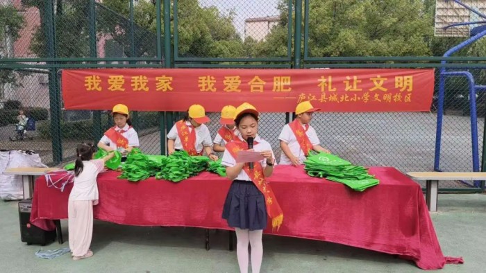 庐江县城北小学携手社区开展“我爱我家,我爱合肥,礼让文明”实践活动