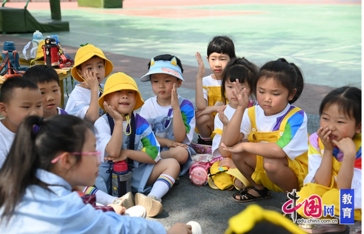 此外,孩子们还观摩了充满活力的大课间活动。整齐划一的广播体操、创意十足的班级游戏,让幼儿园的孩子们目不转睛。大课间结束后,在足球场上,小学体育老师带领幼儿园小朋友共同参与“我说你做”“团队跑步”等游戏。操场上,加油声、欢笑声此起彼伏。
